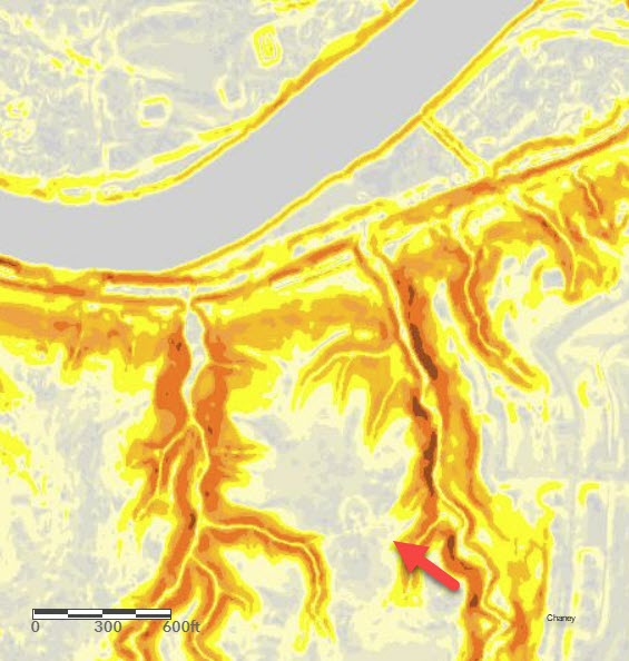 This Earthwork is near the Great Miami River in Butler County near Hamilton Ohio. It is a Hilltop Enclosure following the contours of the topography of the hill it is built upon. Surveyed by James McBride. It is now a Metro Park and protected.