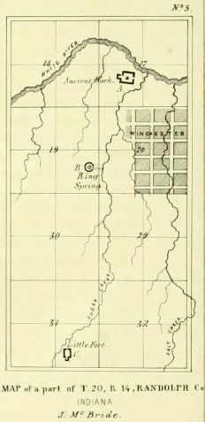 Winchester Earthworks is located North West of Winchester Indiana it is at the confluence of the White River and Sugar Creek. The remnants of the square can still be seen in LIDAR.
